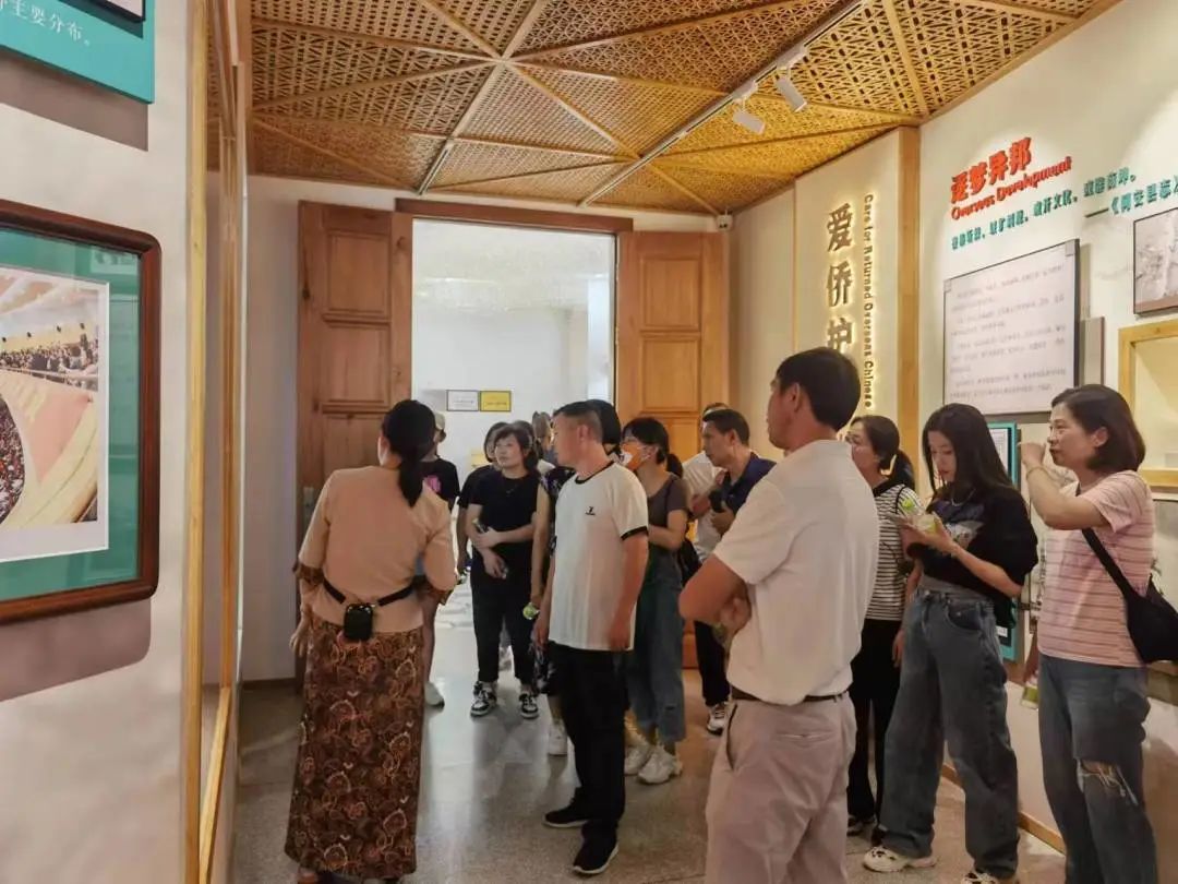 職工們參觀了具有濃郁異國色彩的南洋竹壩。這里陸陸續續安置了自20世紀60年代以來,來自印尼、越南、柬埔寨、泰國、緬甸、新加坡、馬來西亞、菲律賓等八個國家的5000多名歸僑,他們給這里帶來了異國的風情舞蹈、特色美食、斑斕服飾、風土人情。